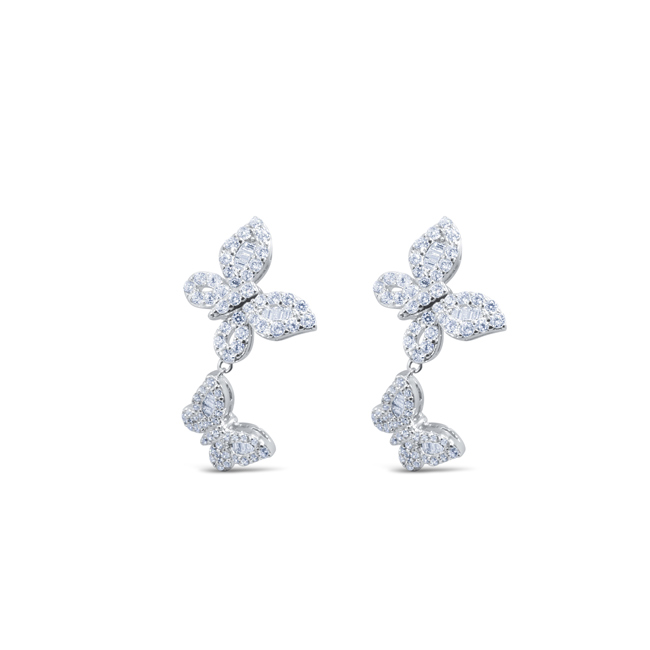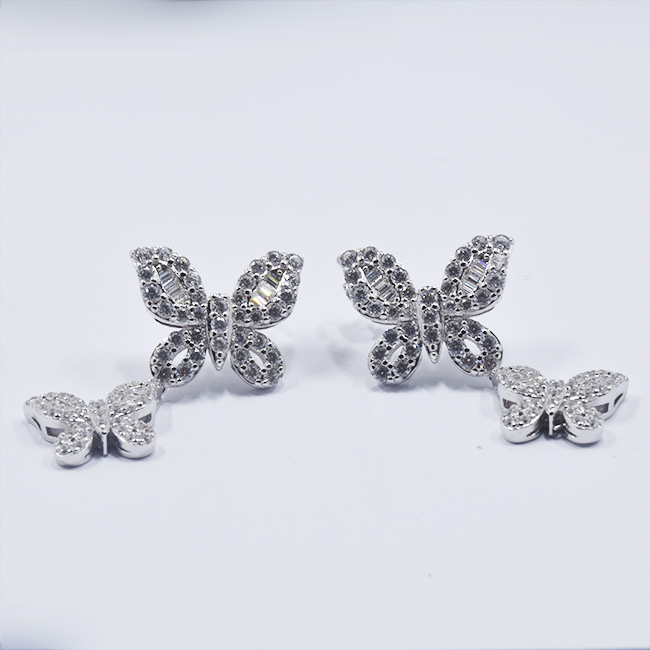 Silver Butterfly Earring Jewellery Set With Zirconia