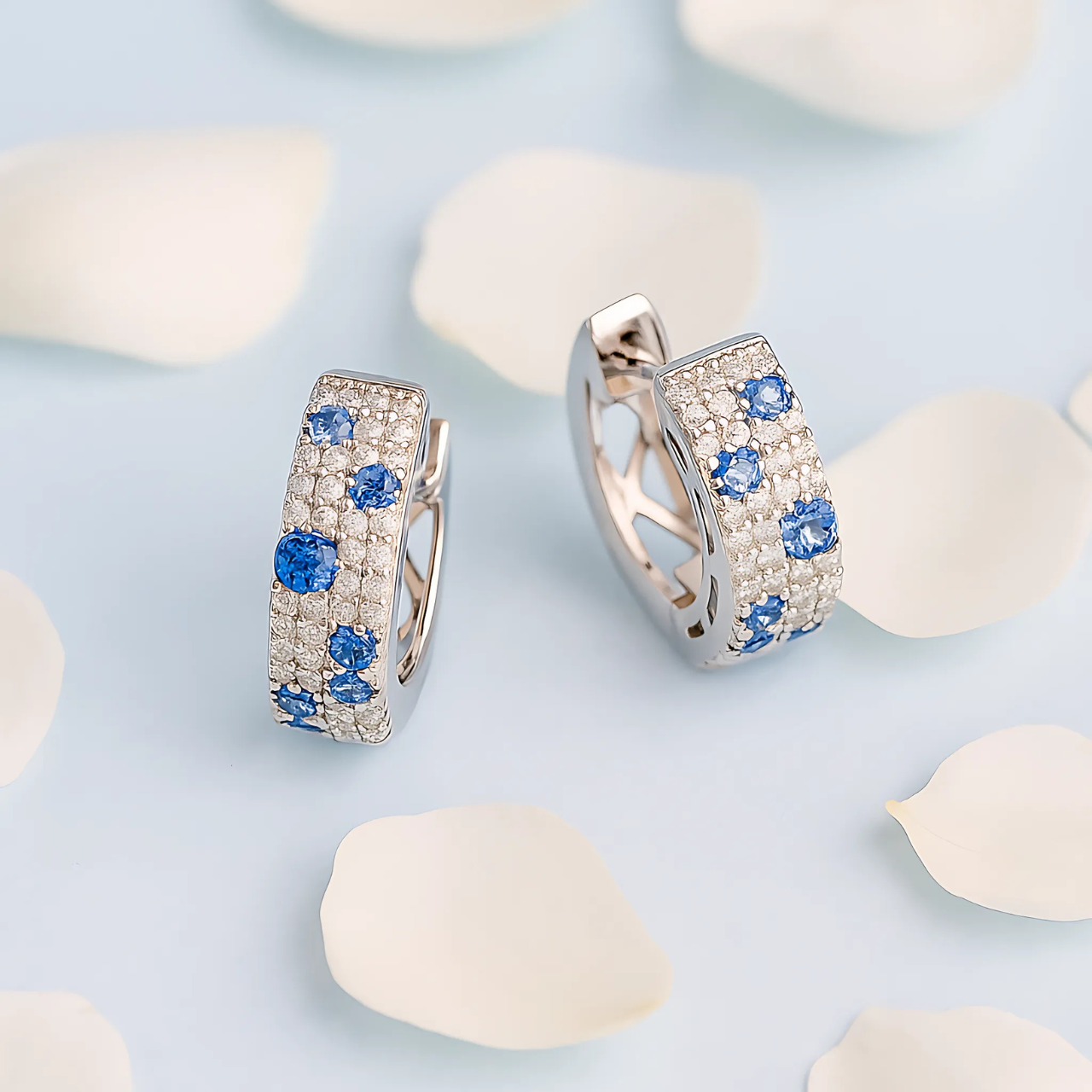 Celeste Sapphire & brilliant CZ Hoop Earrings