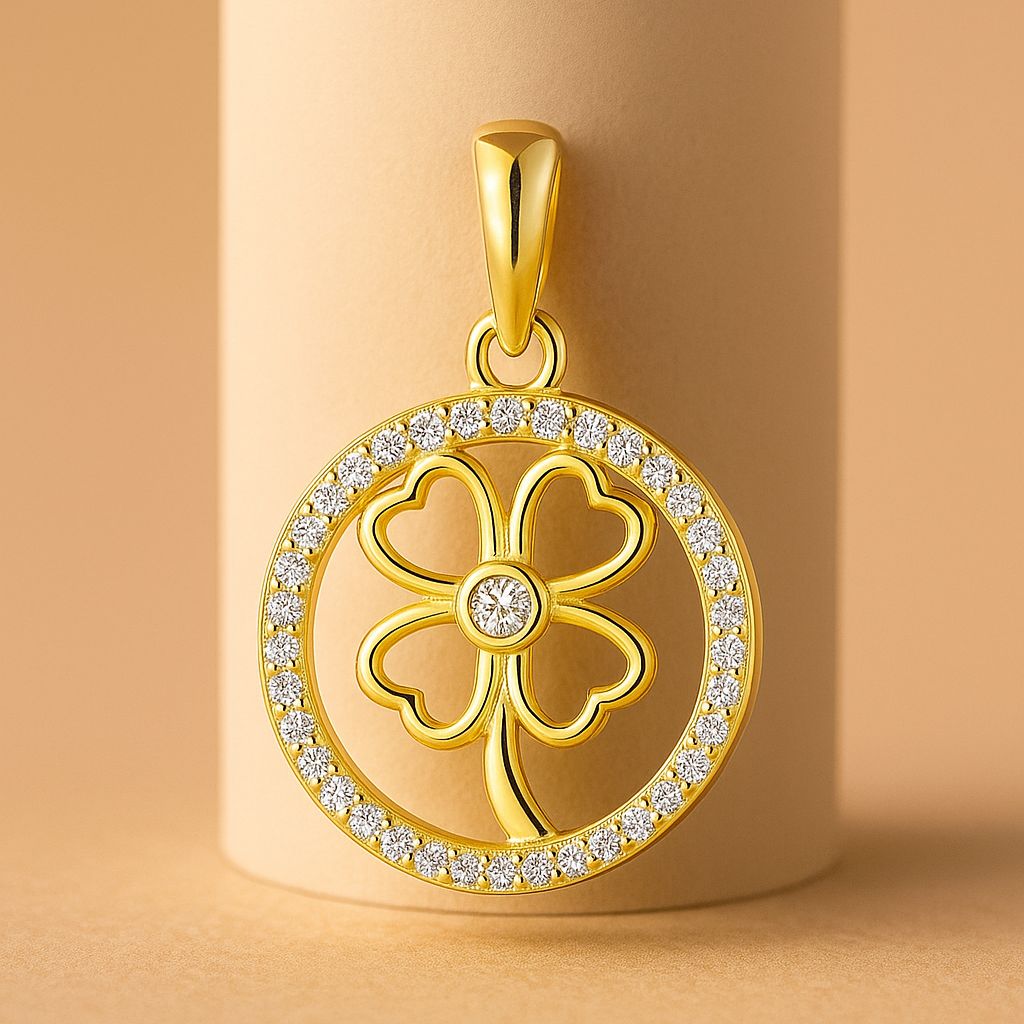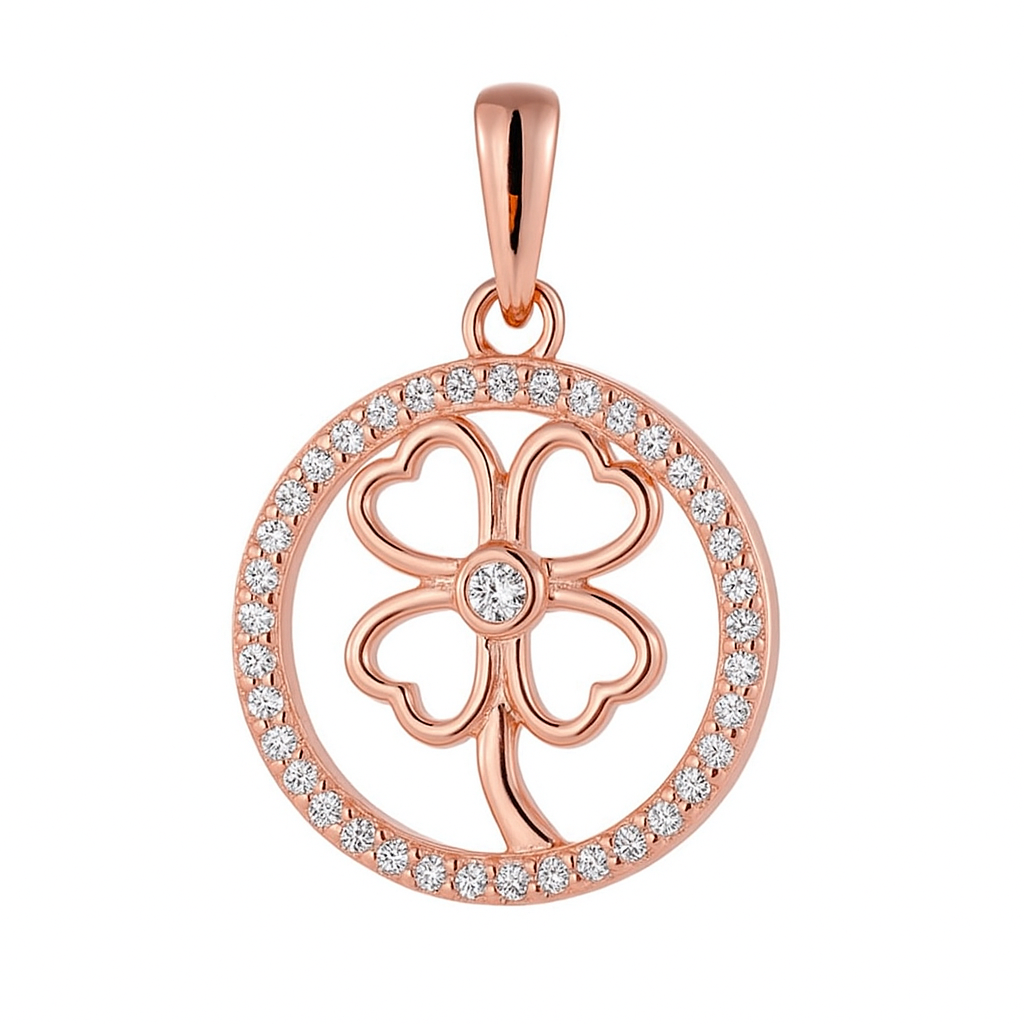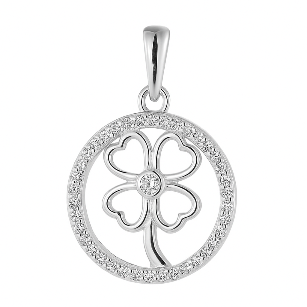 This 925 silverpendant features a four-leaf clover outlined in brilliant CZ, encircled by a brilliant CZ-set halo. A refined emblem of luck and timeless elegance.