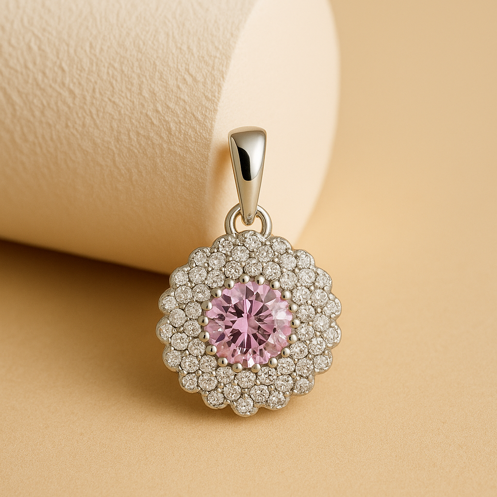 Elegant Pink Sapphire & brilliant CZ Halo Pendant