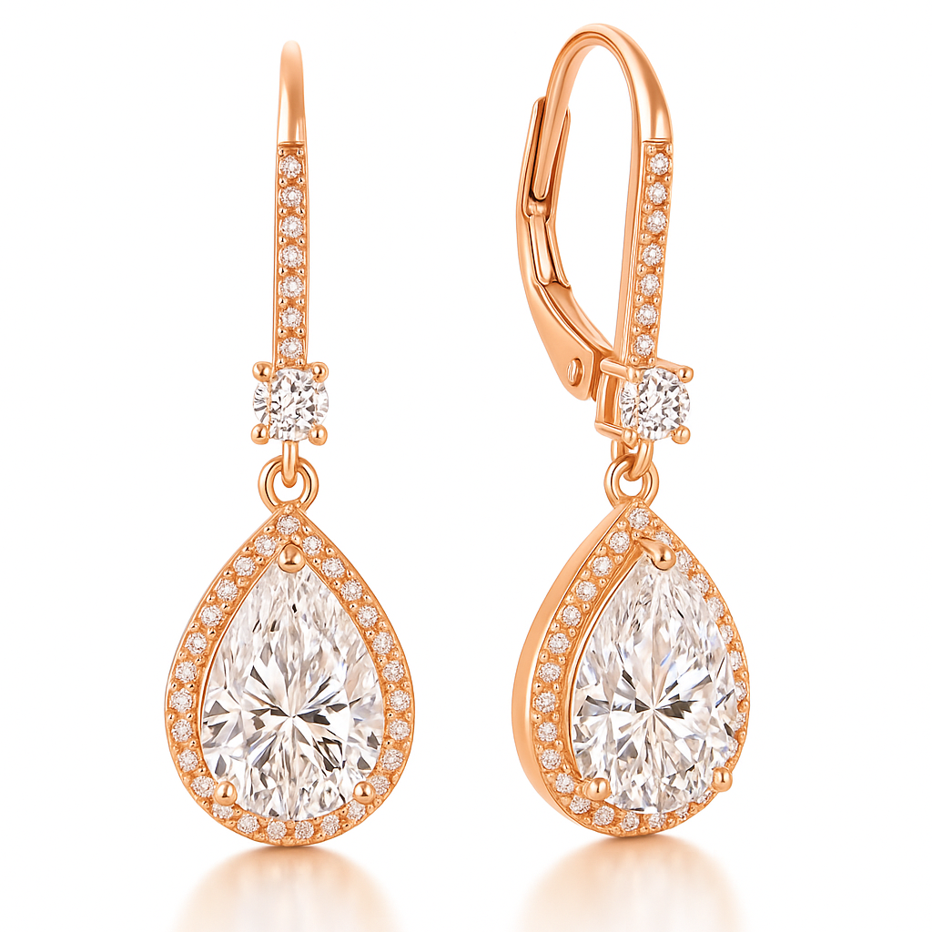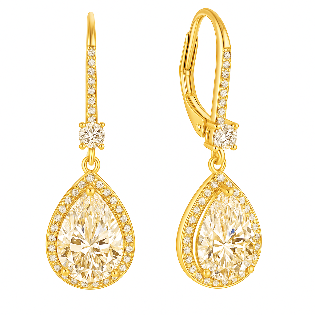 These exquisite drop earrings showcase a breathtaking pear-cut central brilliant CZ, fully customisable to suit personal taste. Surrounded by a halo of meticulously set brilliant CZ and suspended from a brilliant CZ-studded lever-back clasp, each piece is crafted in gold, available in white, yellow, or rose. The perfect balance of dramatic elegance and timeless design.