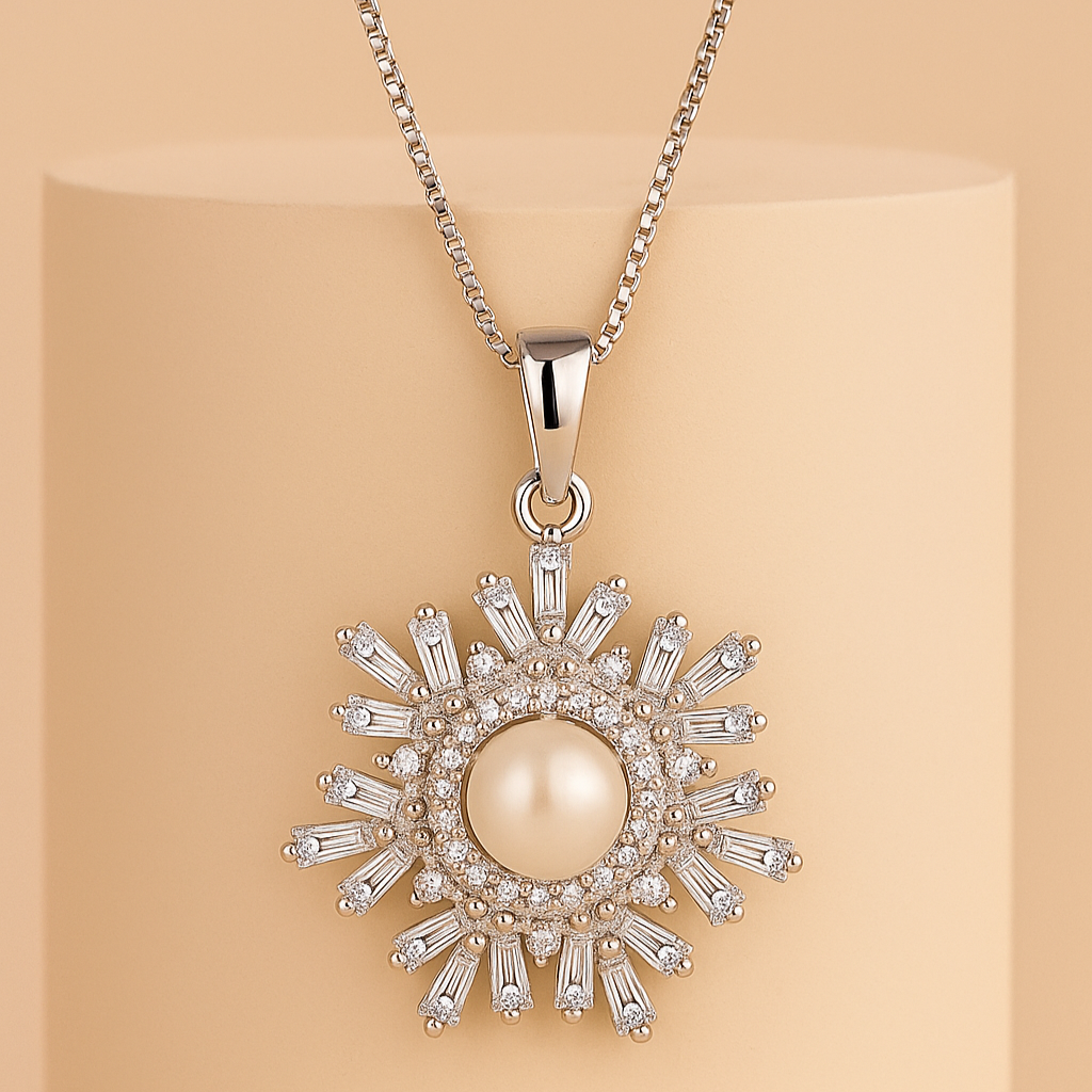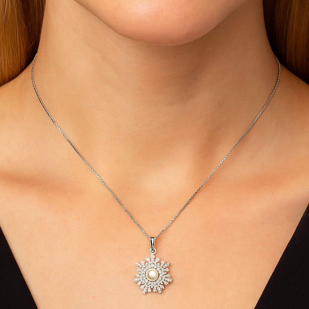 Homepage Necklaces/Pendants Snowflake Pearl & Diamond Pendant(G)
