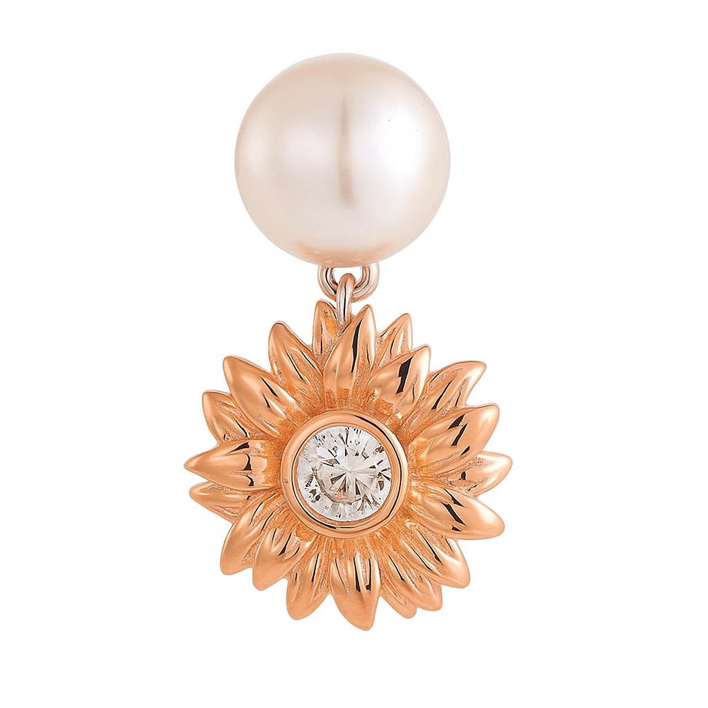 In a field where golden sunflowers sway gently under the sun, this pendant captures the essence of nature's beauty and grace. Designed as a radiant sunflower, its petals sparkle with the brilliance of withthe centre diamond carefully set with VS1 clarity to ensure perfection. Atop the flower sits a lustrous pearl, symbolizing purity and elegance. This enchanting piece represents the balance of light and nature—where the warmth of the sun meets the softness of the pearl, and the diamonds illuminate the beauty of the design. Wearing this pendant is not just about adorning oneself; it's about carrying a piece of nature's joy and timeless elegance, wherever you go.