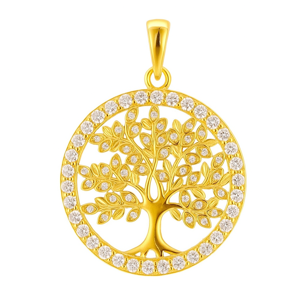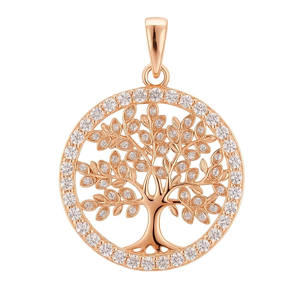 Symbolising growth, strength, and connection, this pendant depicts the Tree of Life in exquisite openwork gold. Available in white, yellow, or rose gold, the design is adorned with shimmering brilliant CZ along the branches and encircling halo, offering both spiritual meaning and luxurious beauty.