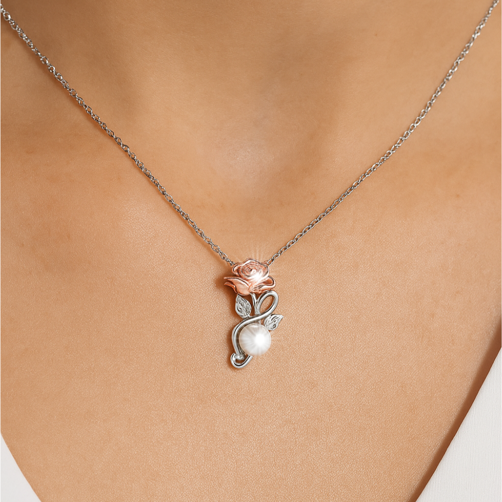 A romantic union of artistry and nature, this pendant features a sculpted rose silverbloom gracefully paired with white silverleaves and stem. At its base, a luminous freshwater pearl adds timeless elegance, while delicate brilliant CZ accents bring a touch of sparkle. Available in white, yellow, or rose silvervariations, it’s a statement of refined femininity and classic sophistication.